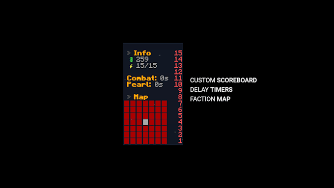 Works for most popular versions!You will receive a customized Faction scoreboard plugin+configuration files. disclaimer: plugin was not made by me. I am simply configuring it for you.