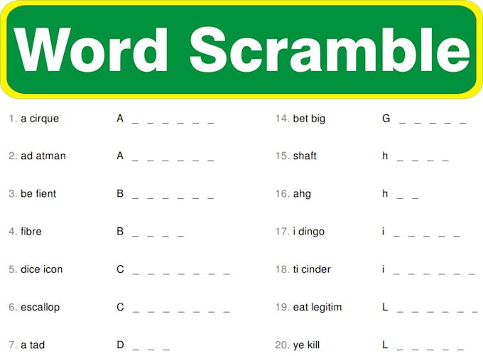 The word scramble puzzles in this bundle are for everyone including kids, students and seniors. Some of the puzzles are easy, while others are slightly more challenging. An answer key is included for each puzzle, with the answers.